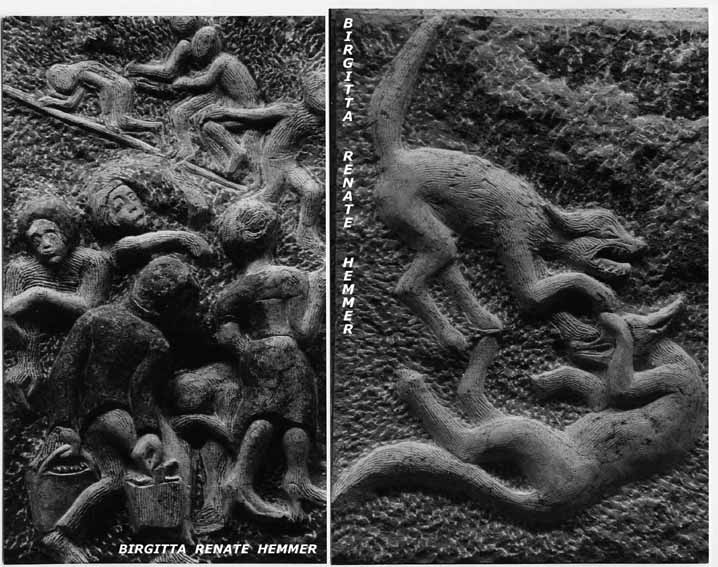 Homo homini lupus (el hombre es un lobo para el hombre) 2 relieves (pedra de Buxy) 1.)99,8 x 60 x 11 cm and 2.)107 x 75 x 7 cm |