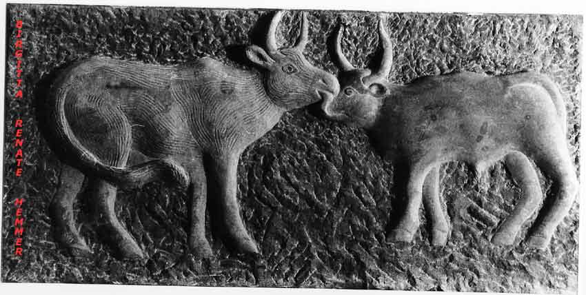 Homo homini lupus - der Mensch ist dem Menschen ein Wolf 2 Reliefs (Stein von Buxy): 1.)99,8 x 60 x 11 cm and 2.)107 x 75 x 7 cm